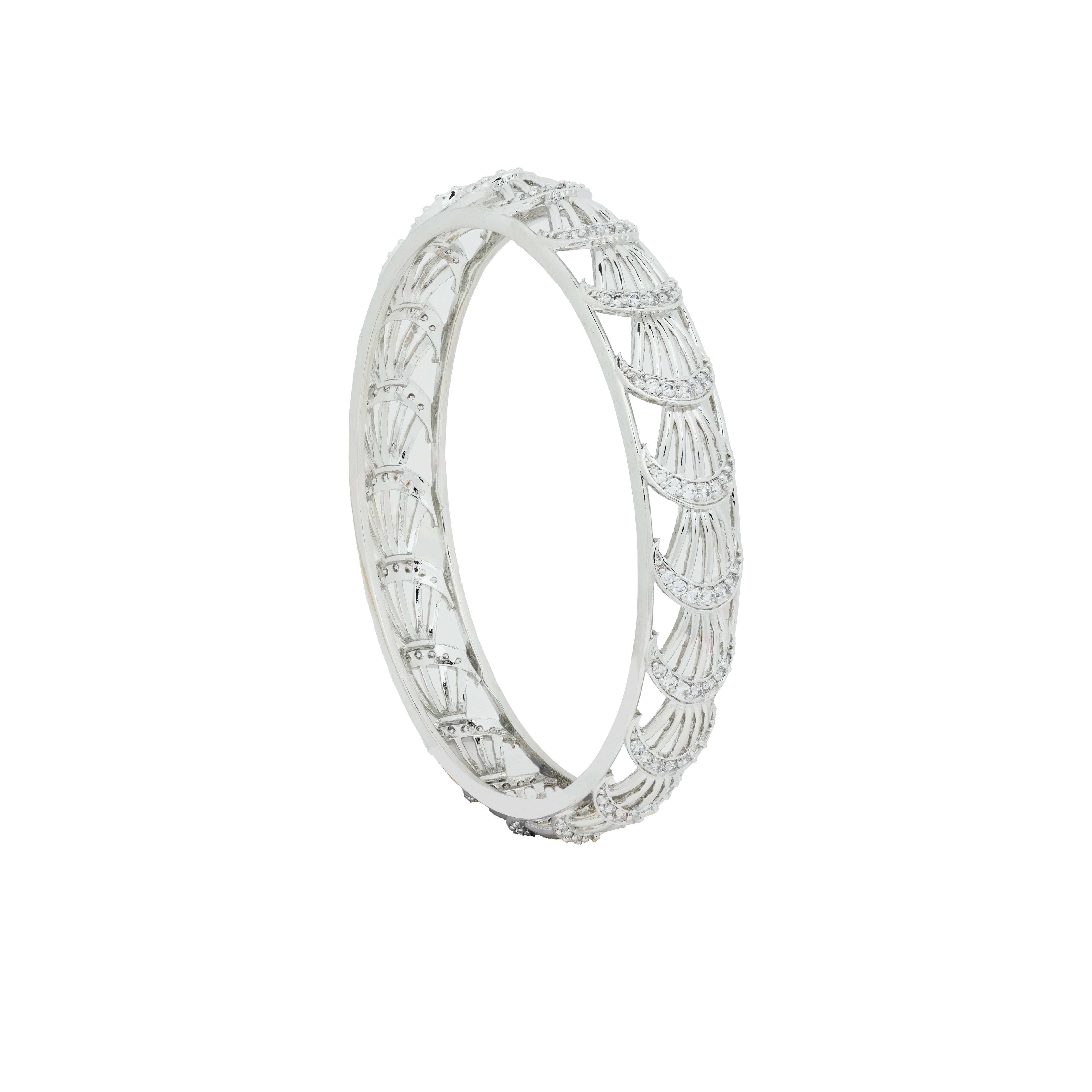 Product Description : Rhodium Plated American diamond Bangles Kada type set for women.
