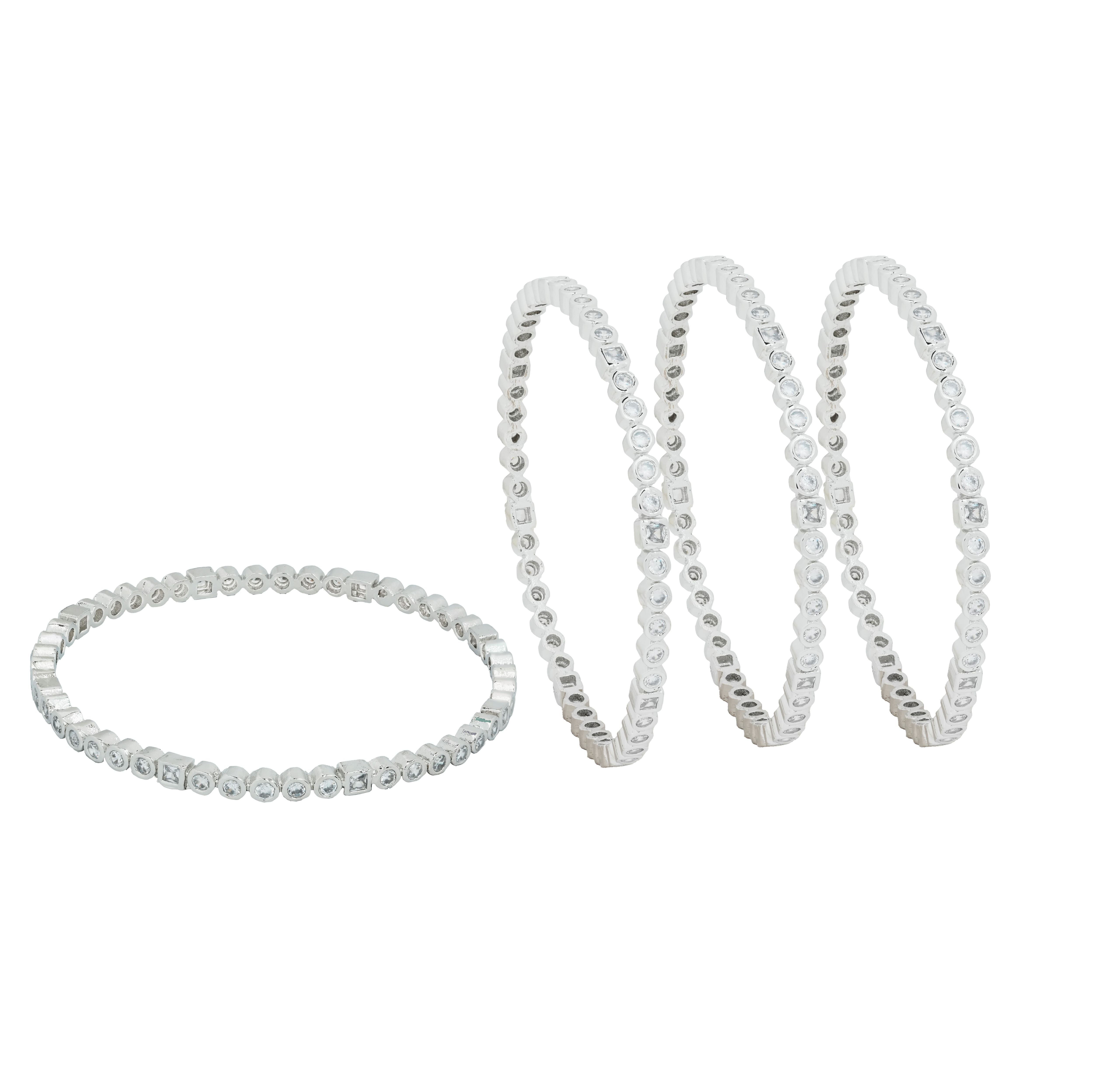 Product Description : Rhodium Plated American diamond Bangles Kada type set for women.