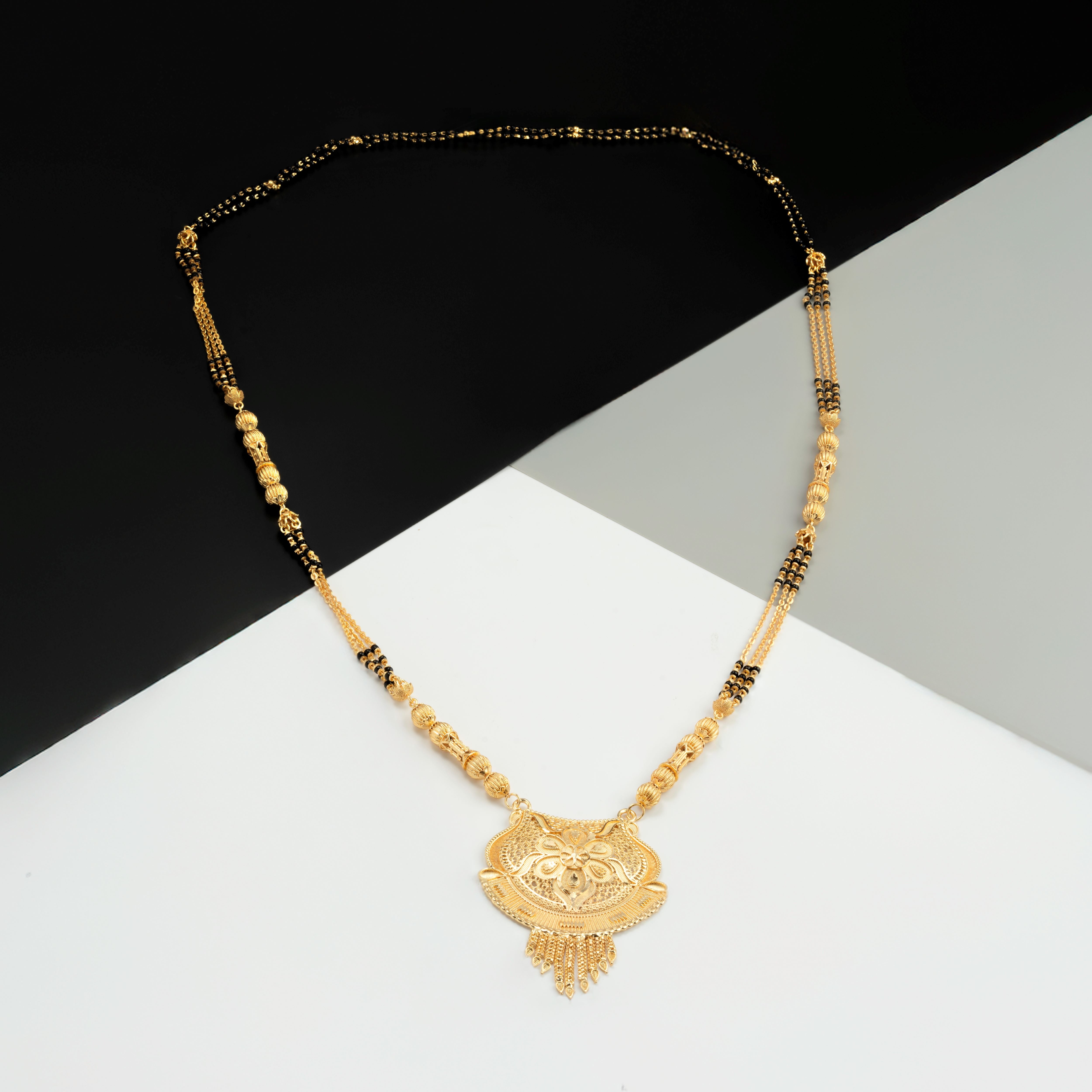 Product Description : Gold plated Mangalsutra with black Beads for women .Maharashtrian wati Tanmaniya Mangalsutra .
