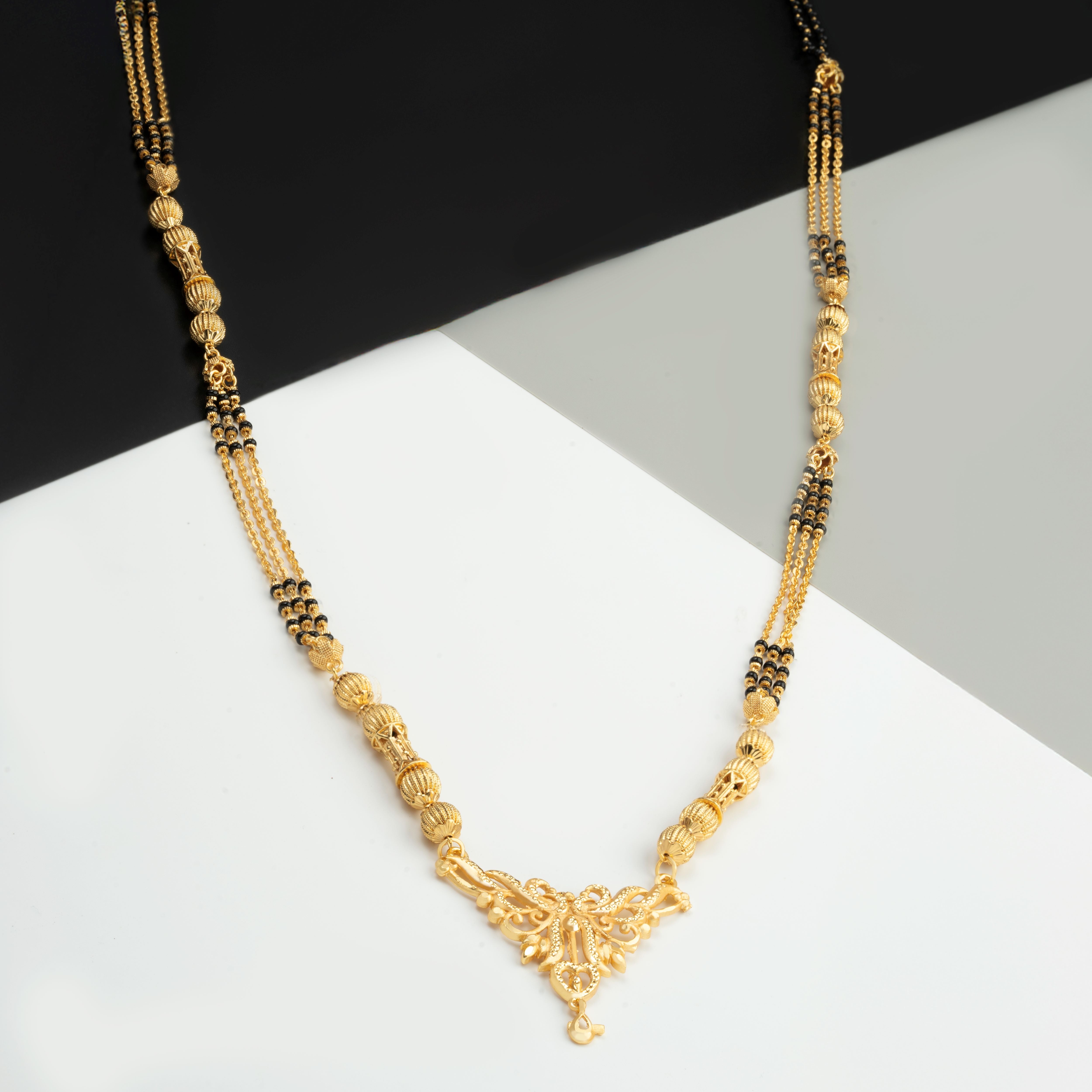 Product Description : Gold plated Mangalsutra with black Beads for women .Maharashtrian wati Tanmaniya Mangalsutra .