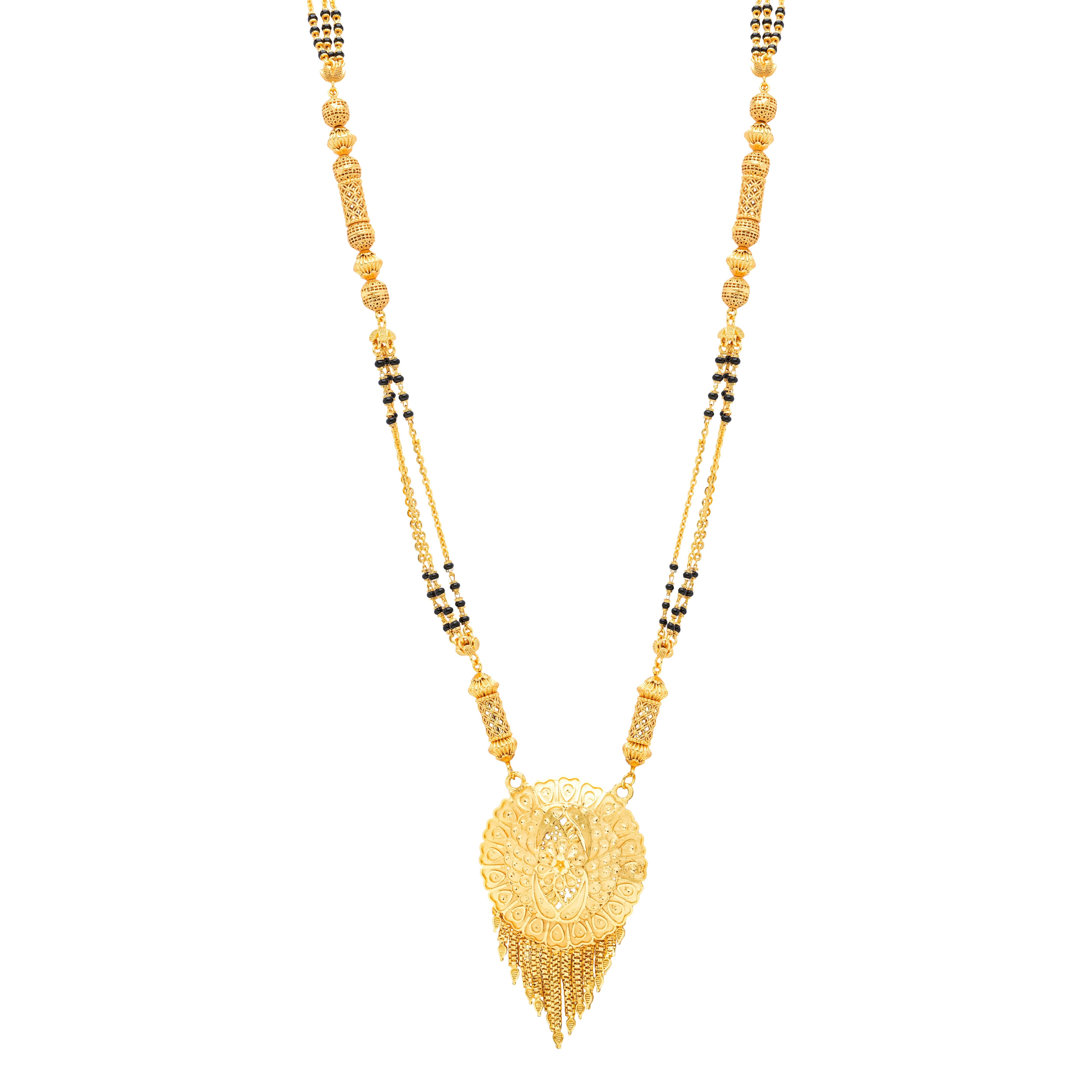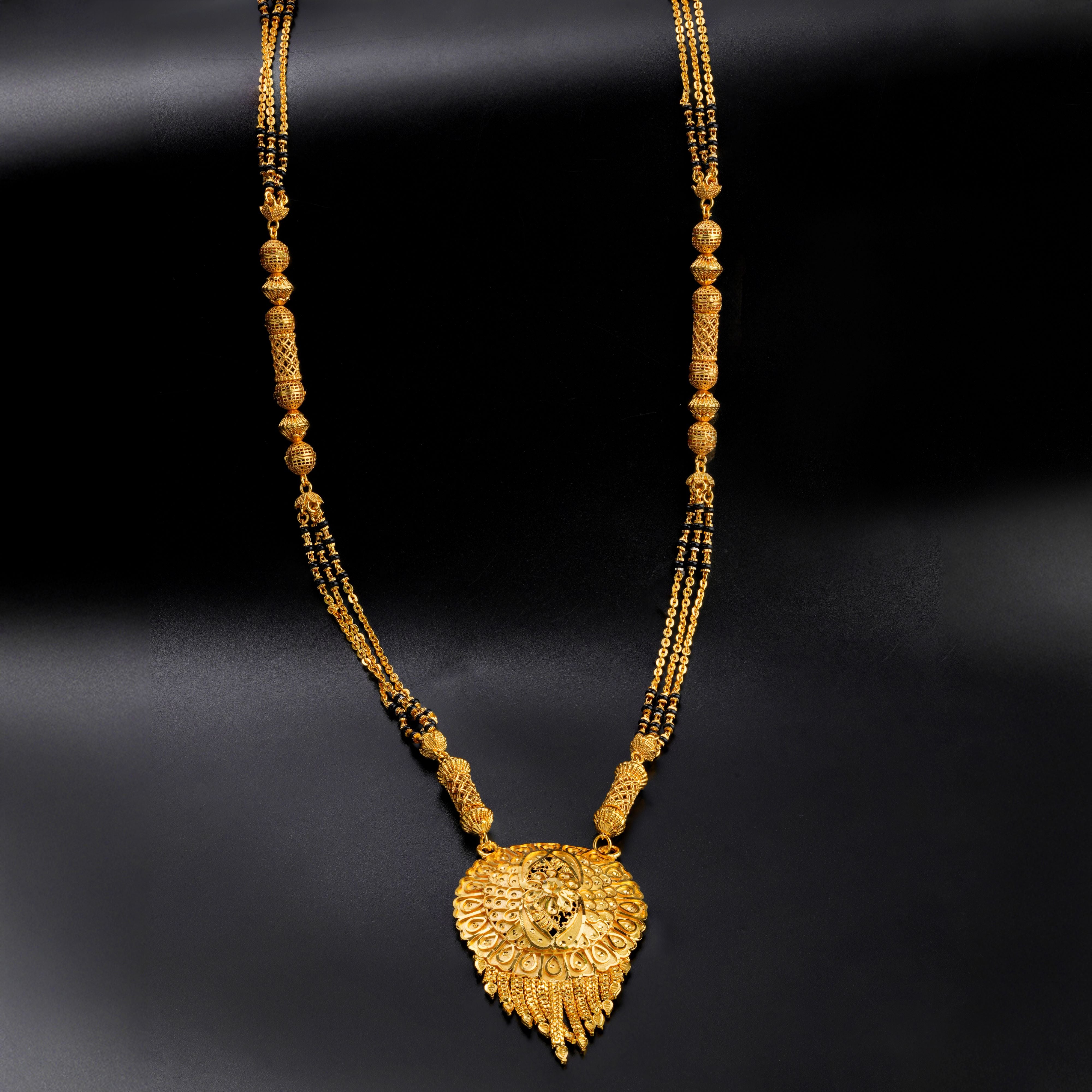 Product Description : Gold plated Mangalsutra with black Beads for women .Maharashtrian wati Tanmaniya Mangalsutra .