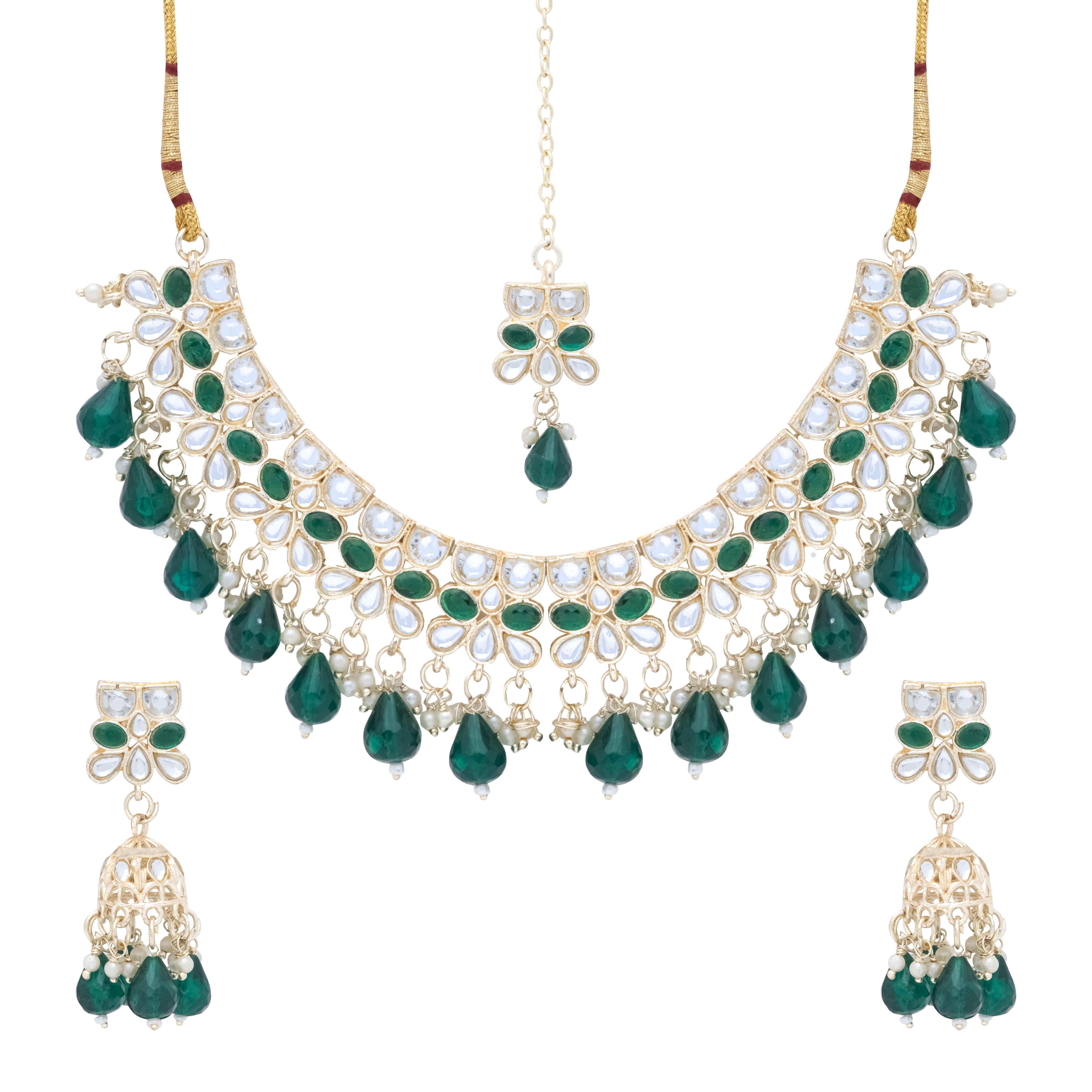 Product Description : Gold Plated Kundan Stones Necklace Choker wedding Set for Women with Maangtika & Earrings