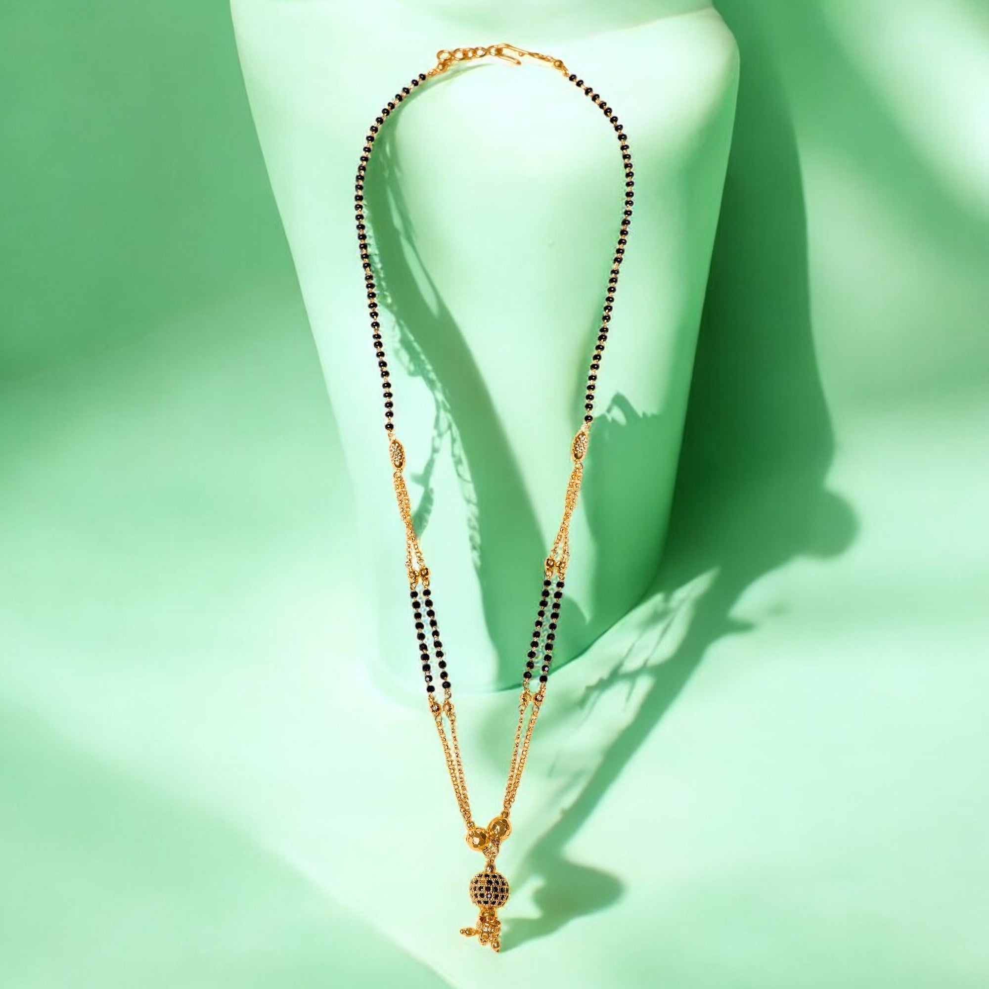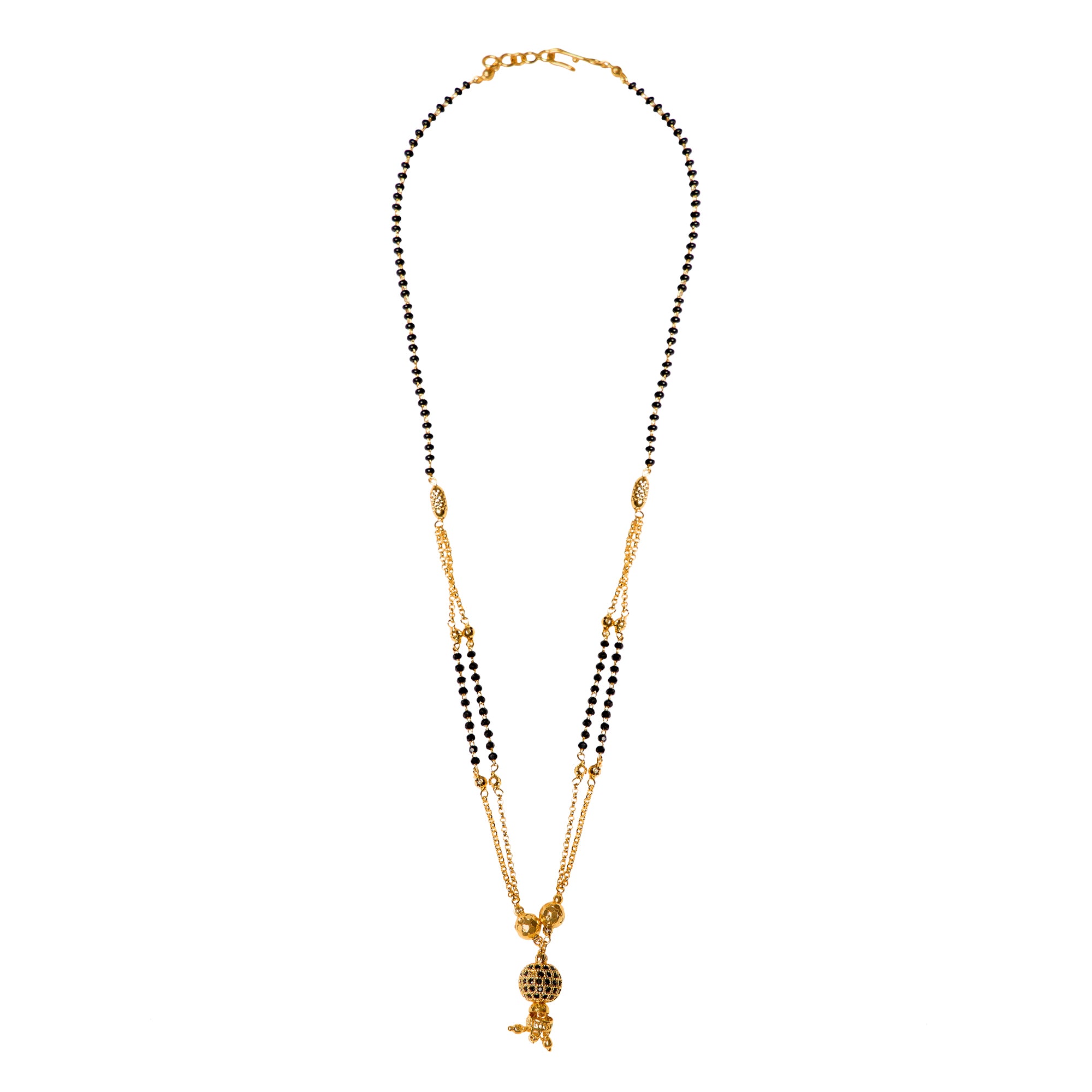 Product Description : Gold plated Mangalsutra with black Beads for women .Maharashtrian wati Tanmaniya Mangalsutra .