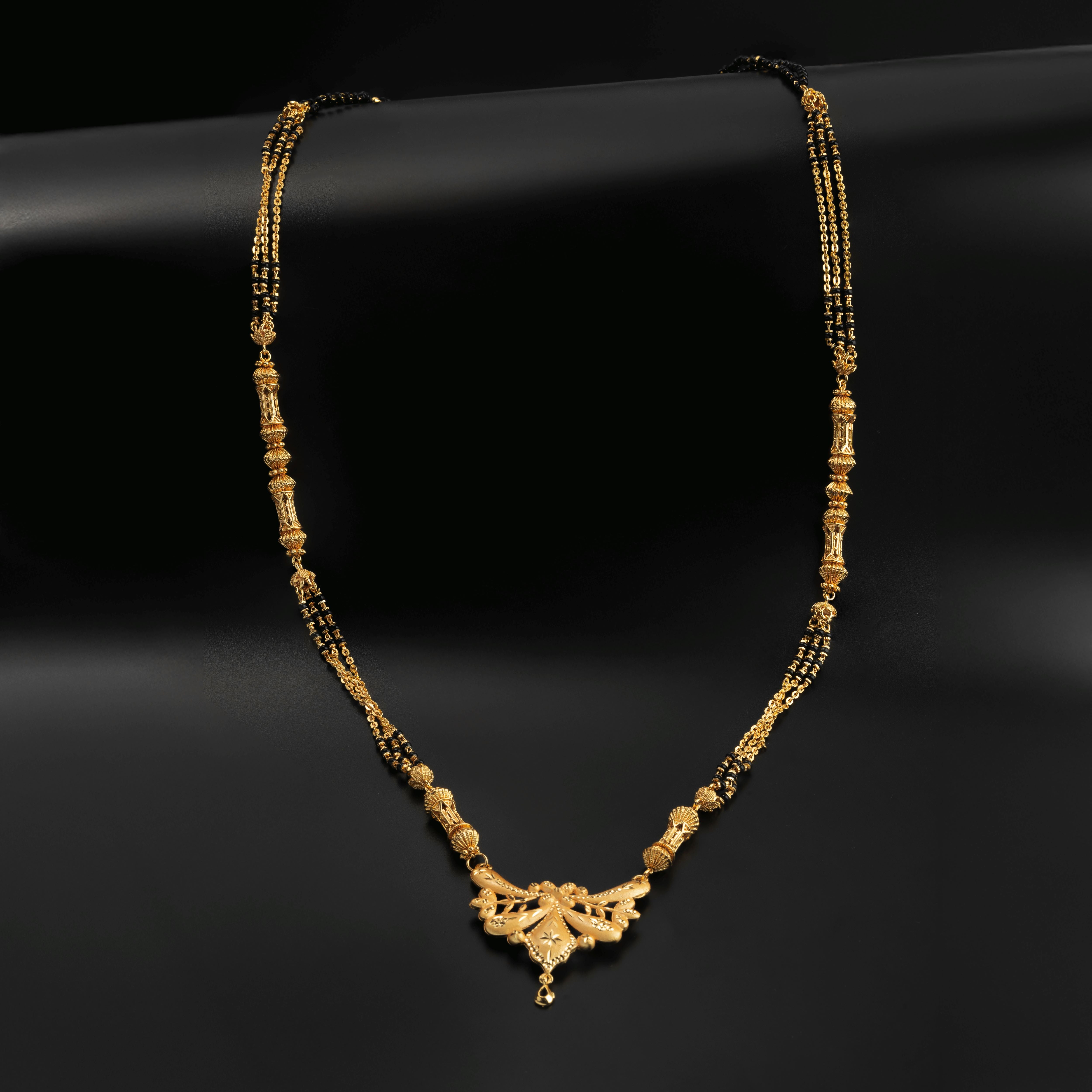 Product Description : Gold plated Mangalsutra with black Beads for women .Maharashtrian wati Tanmaniya Mangalsutra .