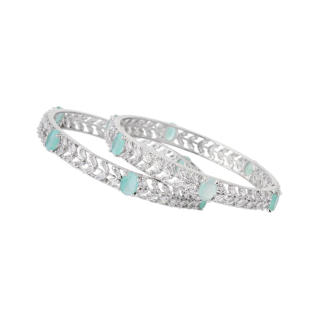 Product Description : American diamond Bangles Kada type set for women with green Gemstones