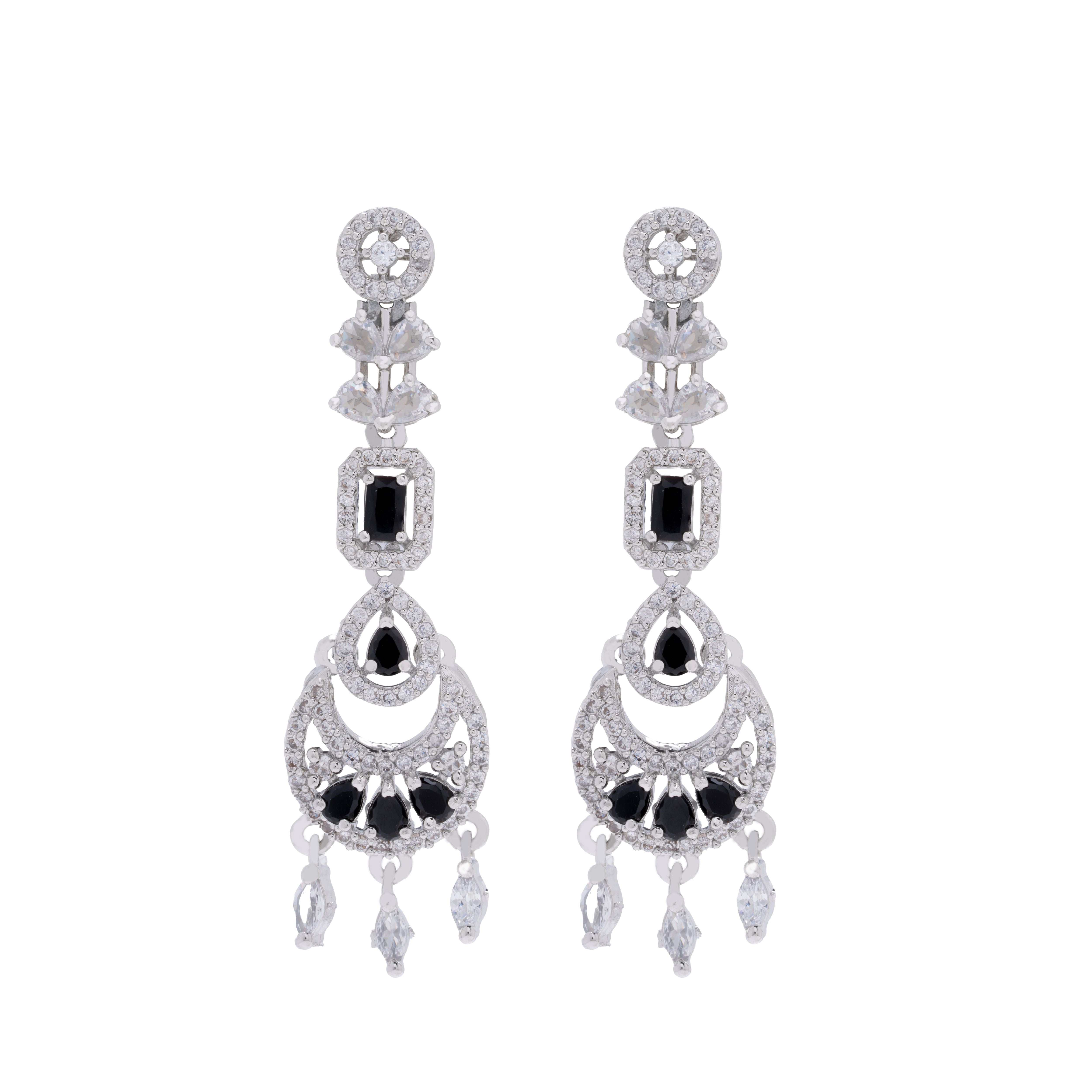 Product Description : Rhodium plated American diamond Necklace jewelry set with trending matching Earrings.