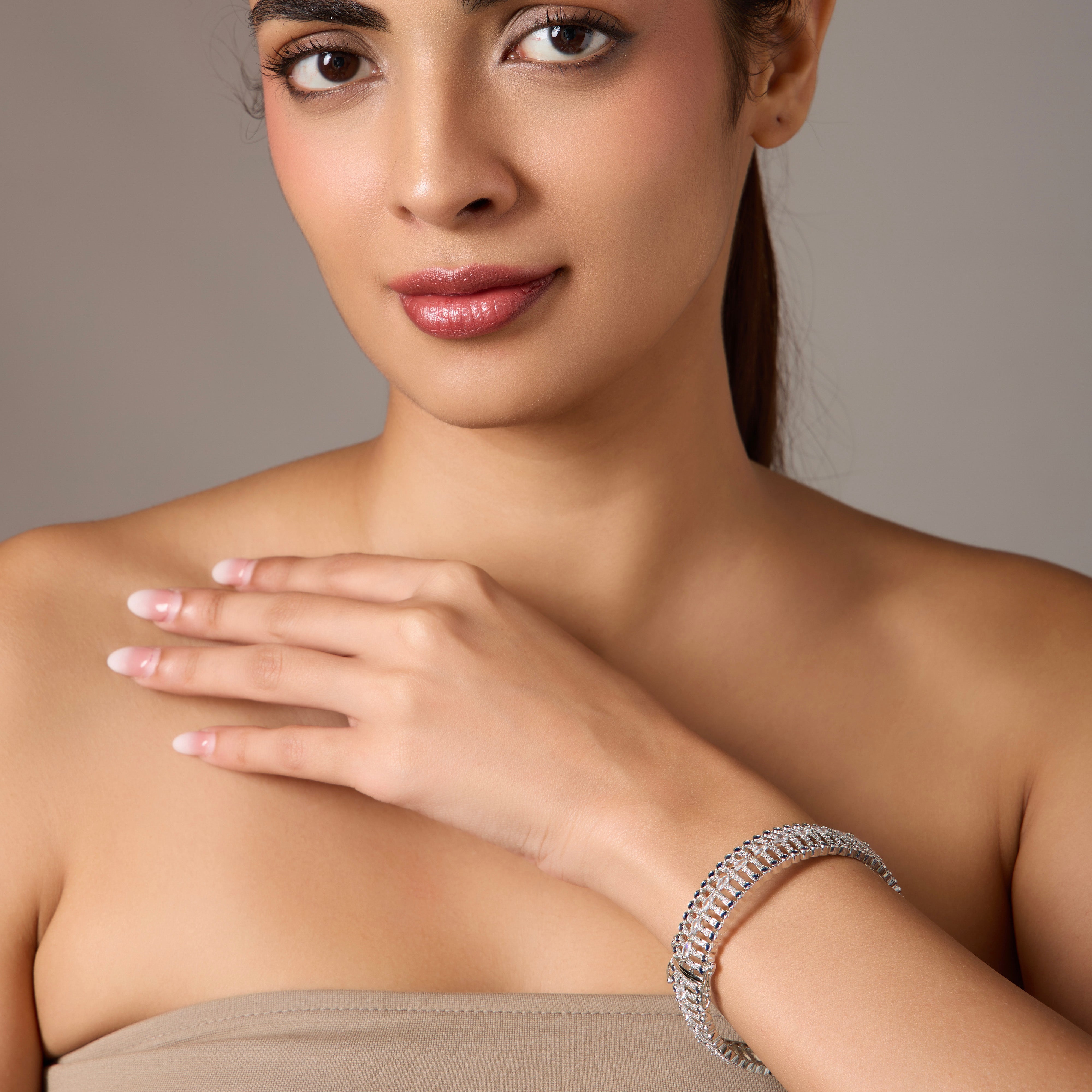 Product Description :Rhodium plated American diamond Bangles Kada type set for women.