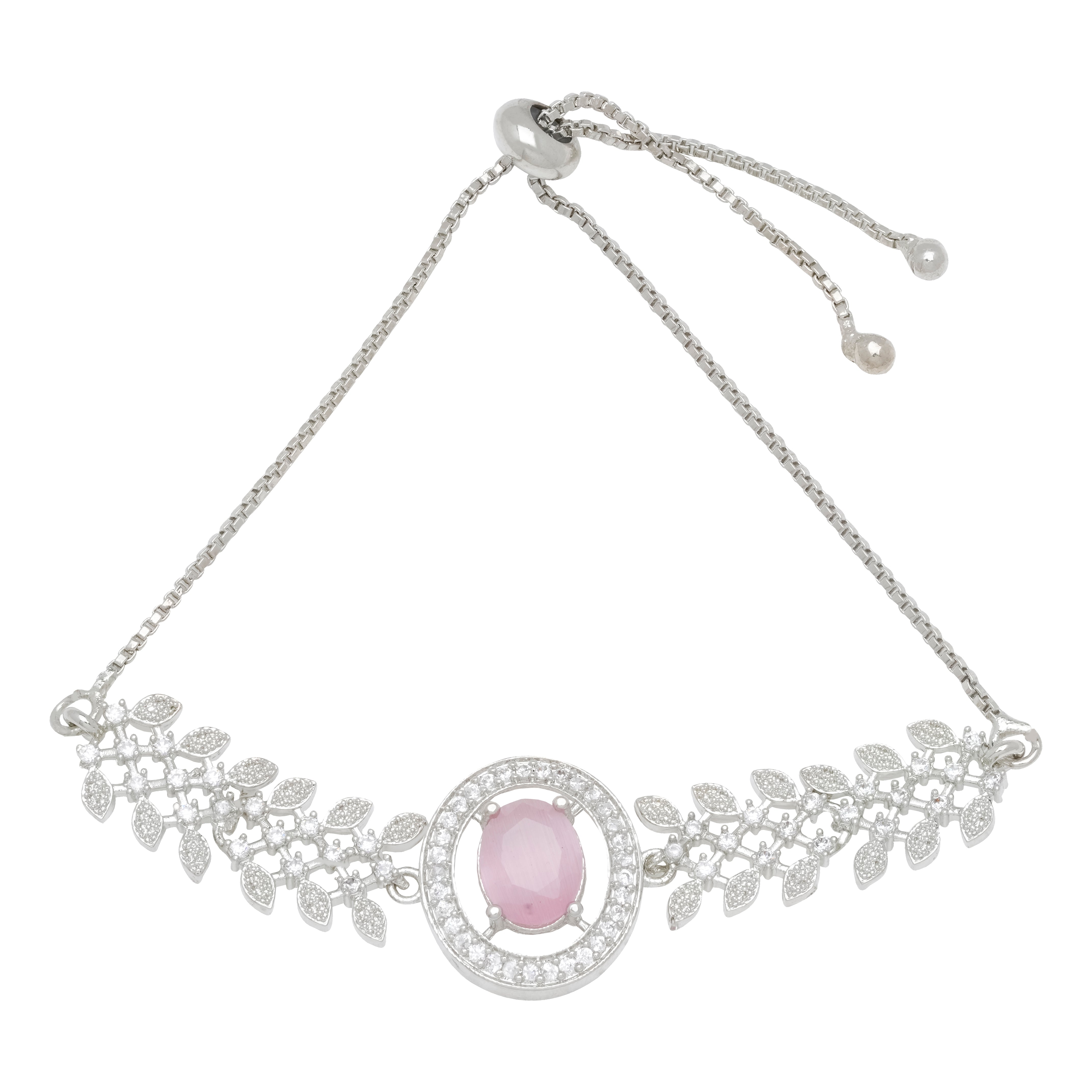 Product Description : Rhodium  plated American diamond CZ Bracelet  jewellery set for women. Silver-toned and white charm bracelet.