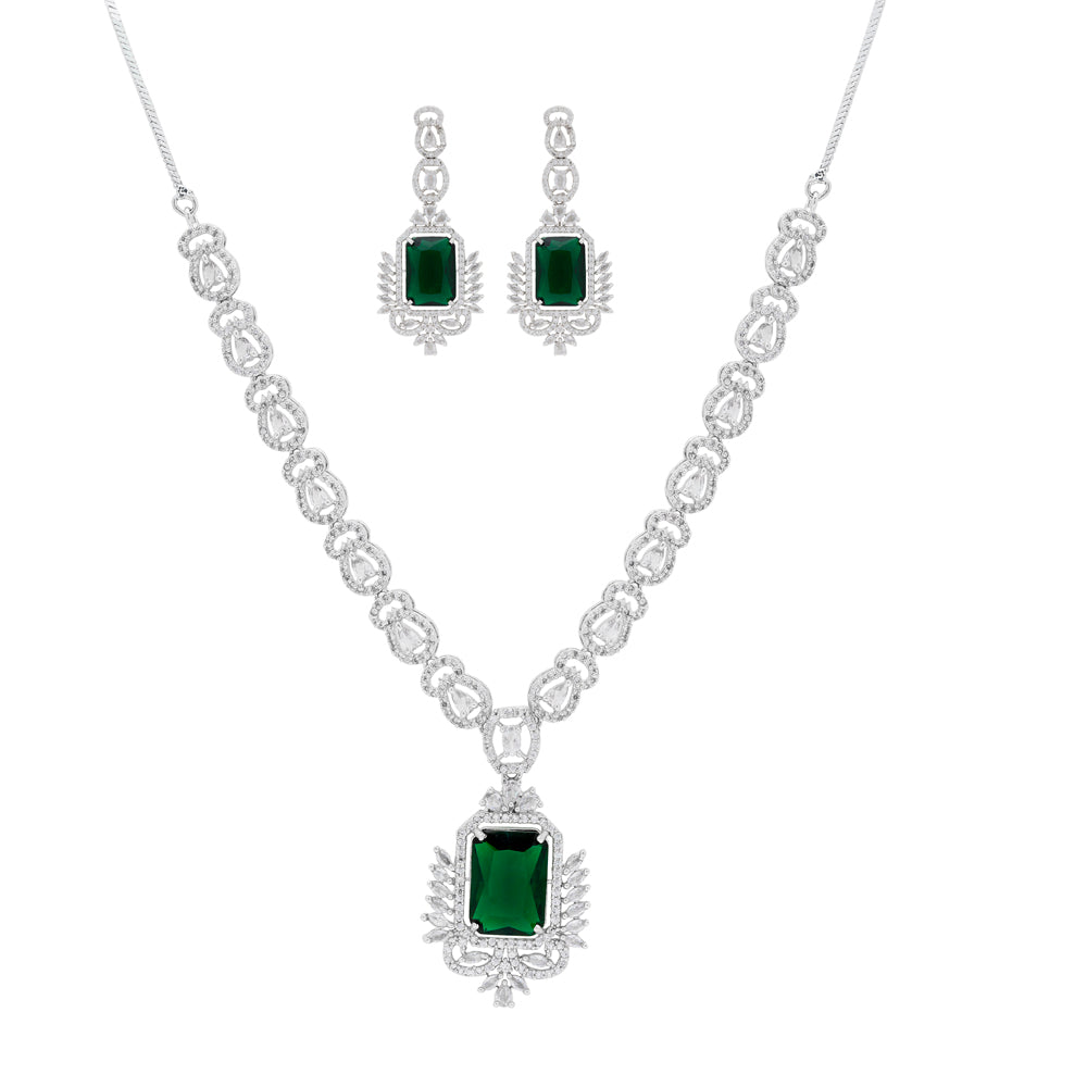 Product Description : American diamond Necklace Pendant chain jewelry set with pair of Earrings.