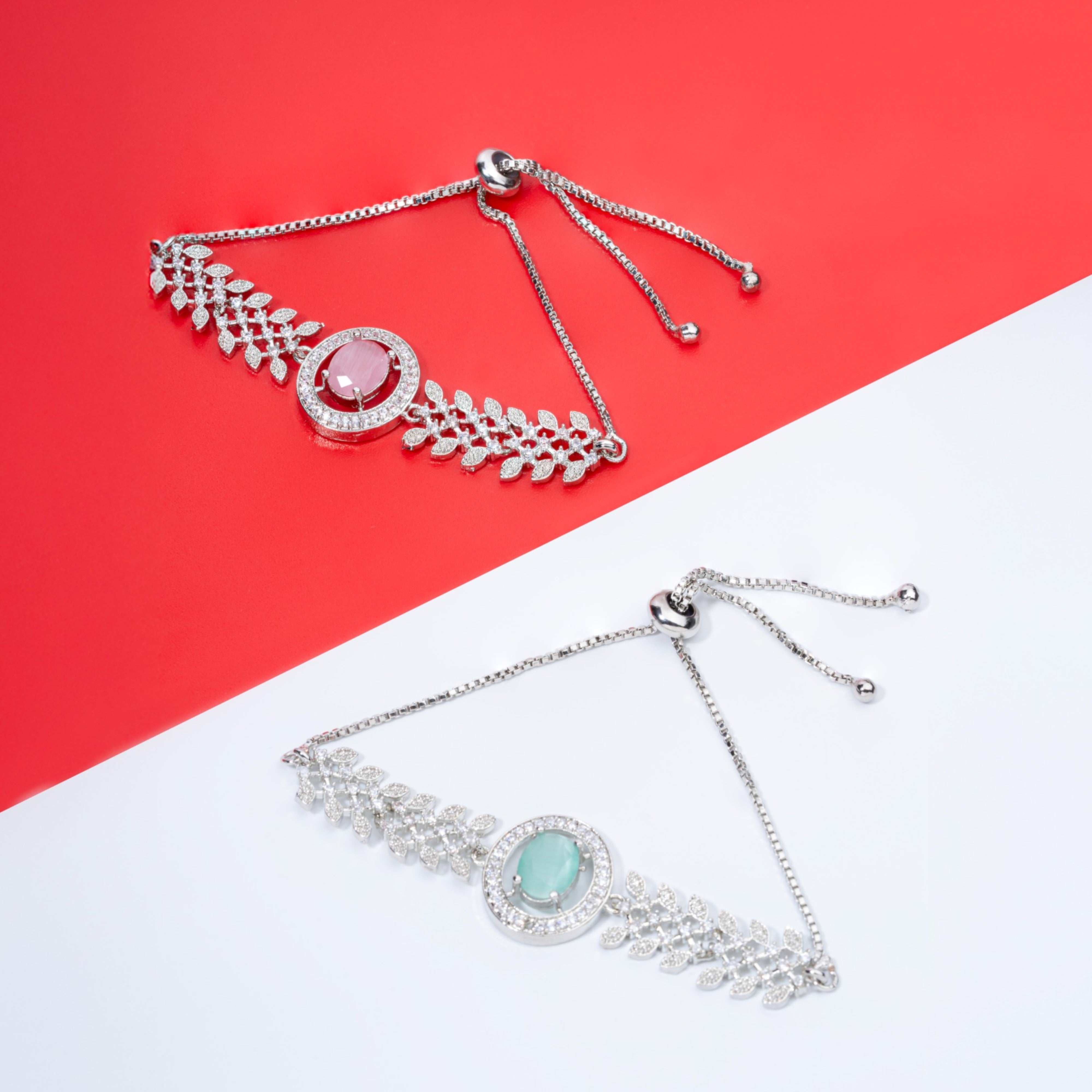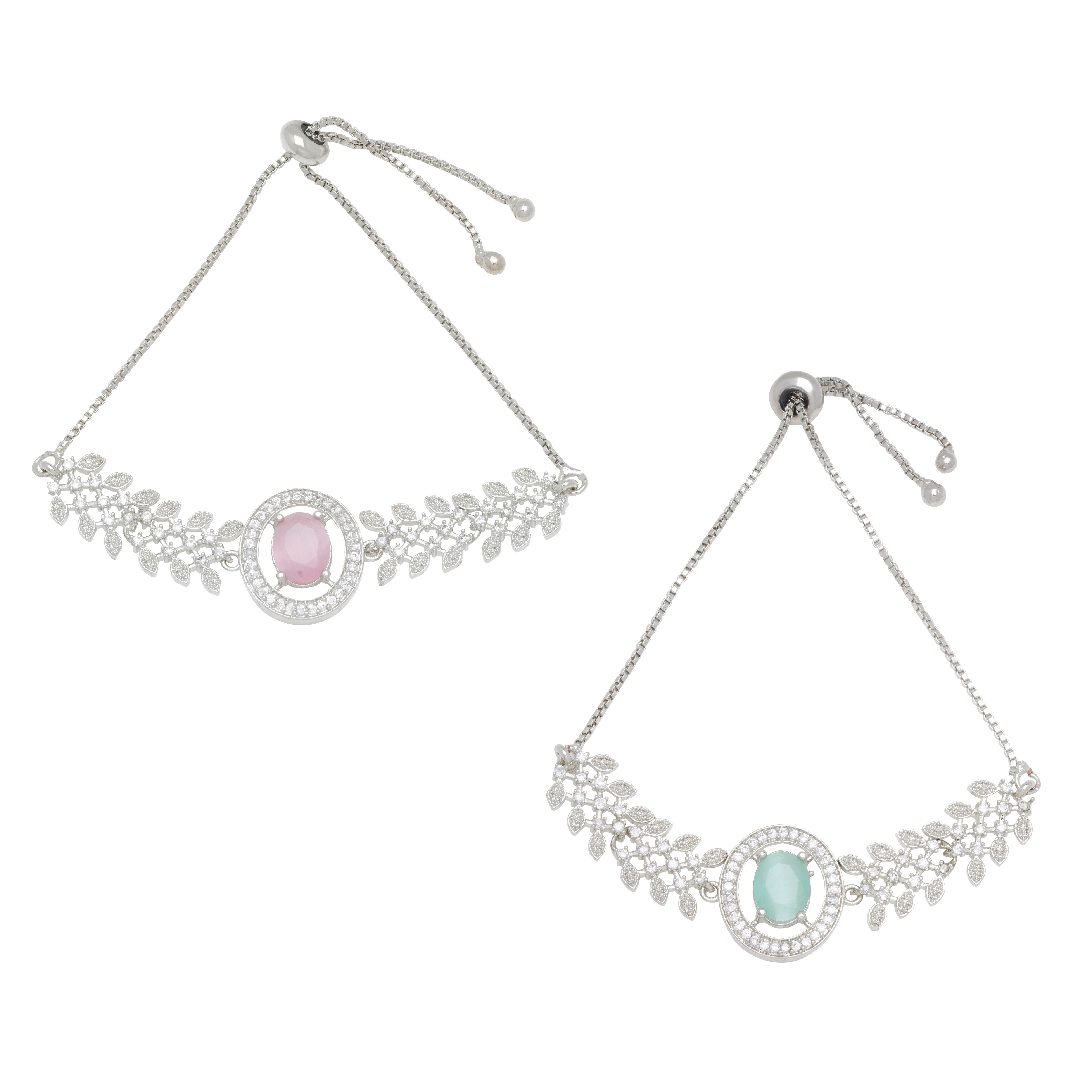 Product Description : Rhodium plated Combo American diamond CZ Bracelet jewellery set for women. Silver-toned and white charm bracelet.