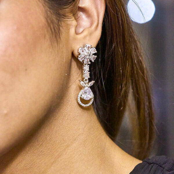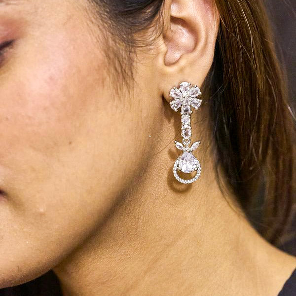 Product Description : Western Style Rhodium plated American Diamond CZ Earrings for Women & girls.