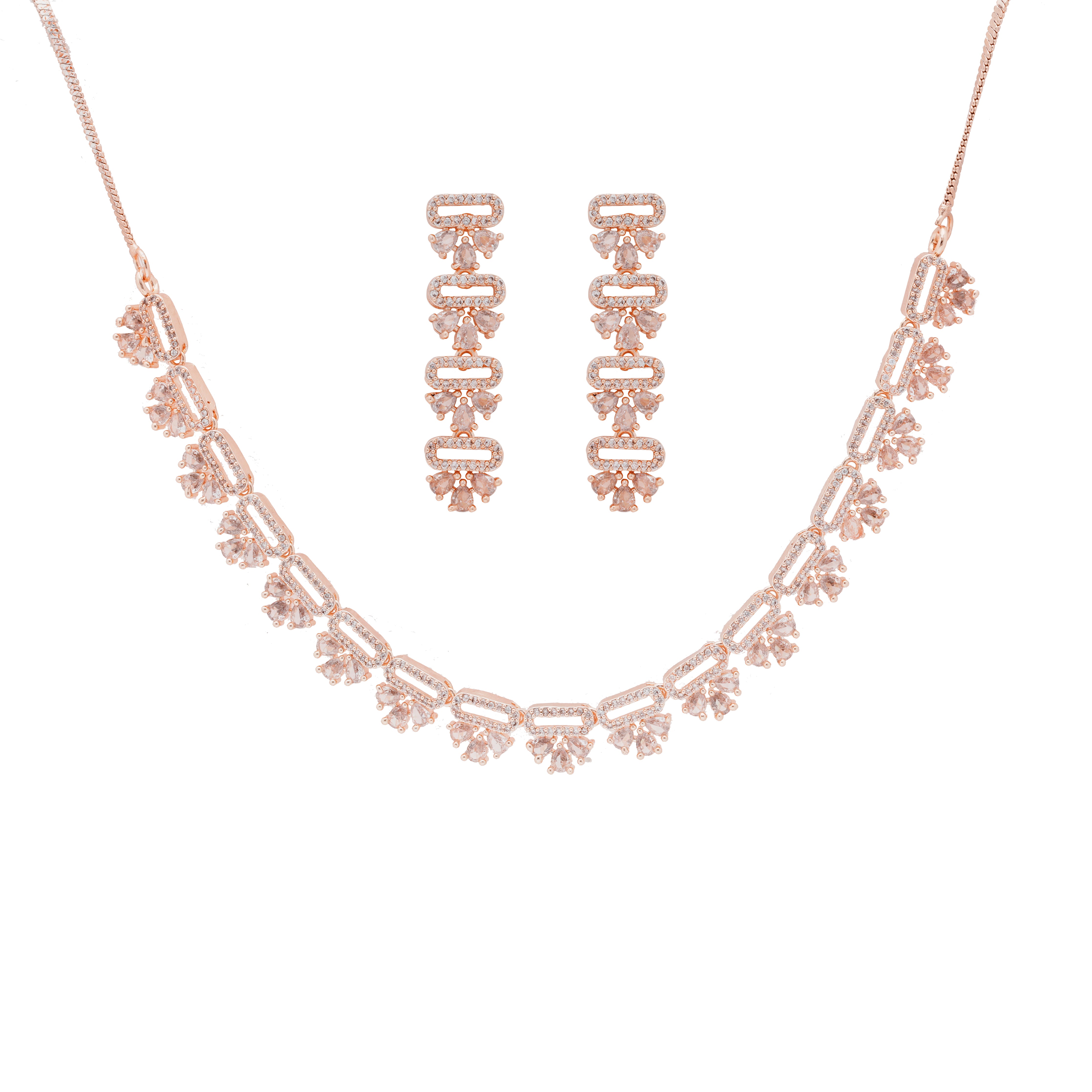 Product Description : Rhodium rose gold plated American diamond Necklace jewelry set with Earrings.