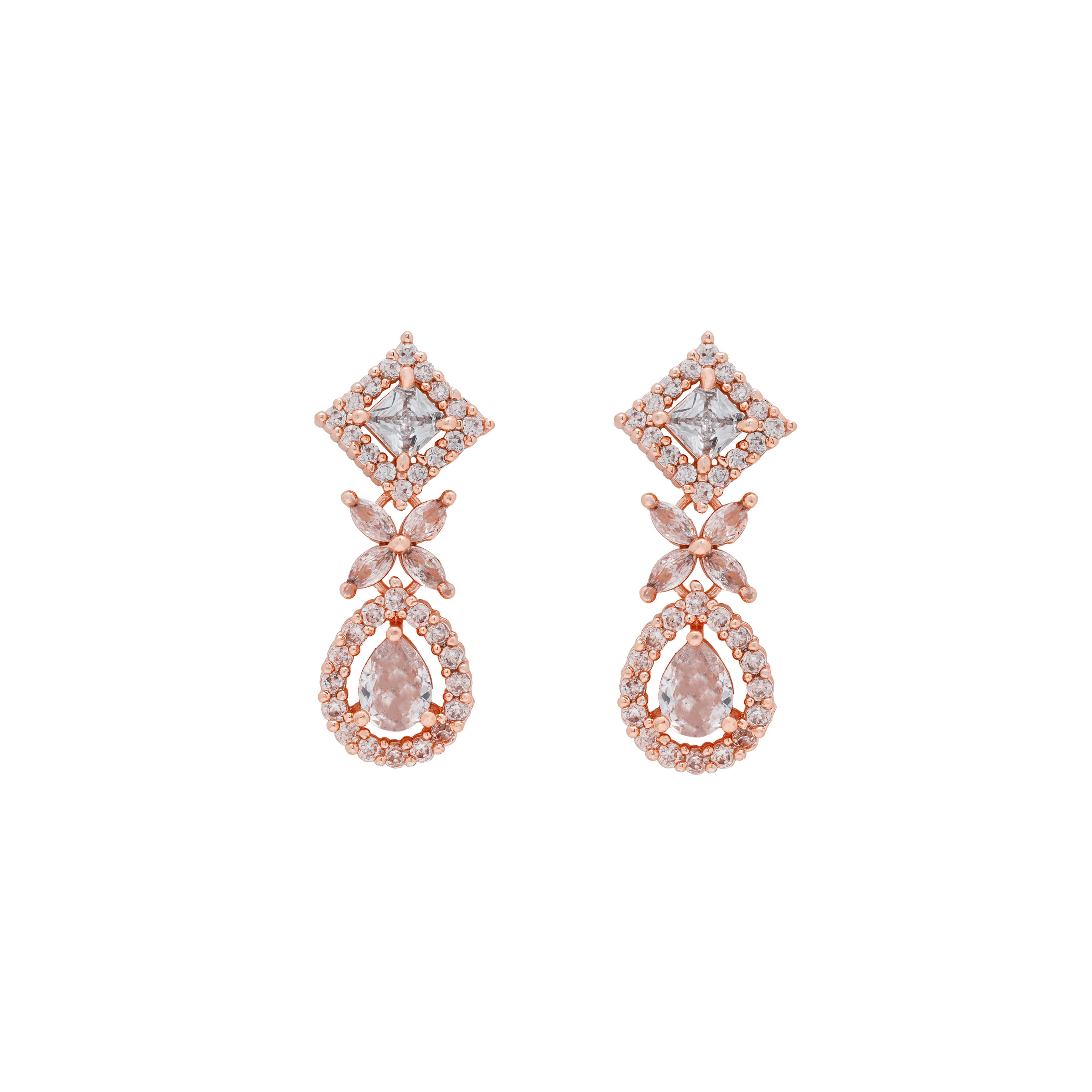 Product Description : Rose gold plated American diamond Necklace jewelry set with Earrings.