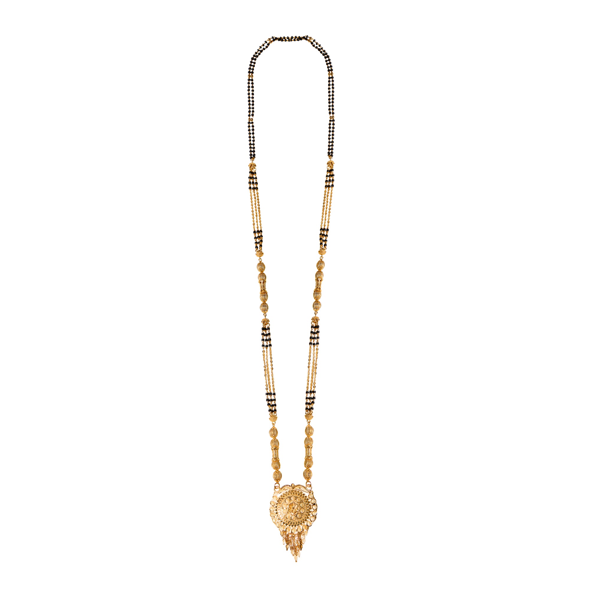 Product Description : Gold plated Mangalsutra with black Beads for women .Maharashtrian wati Tanmaniya Mangalsutra .