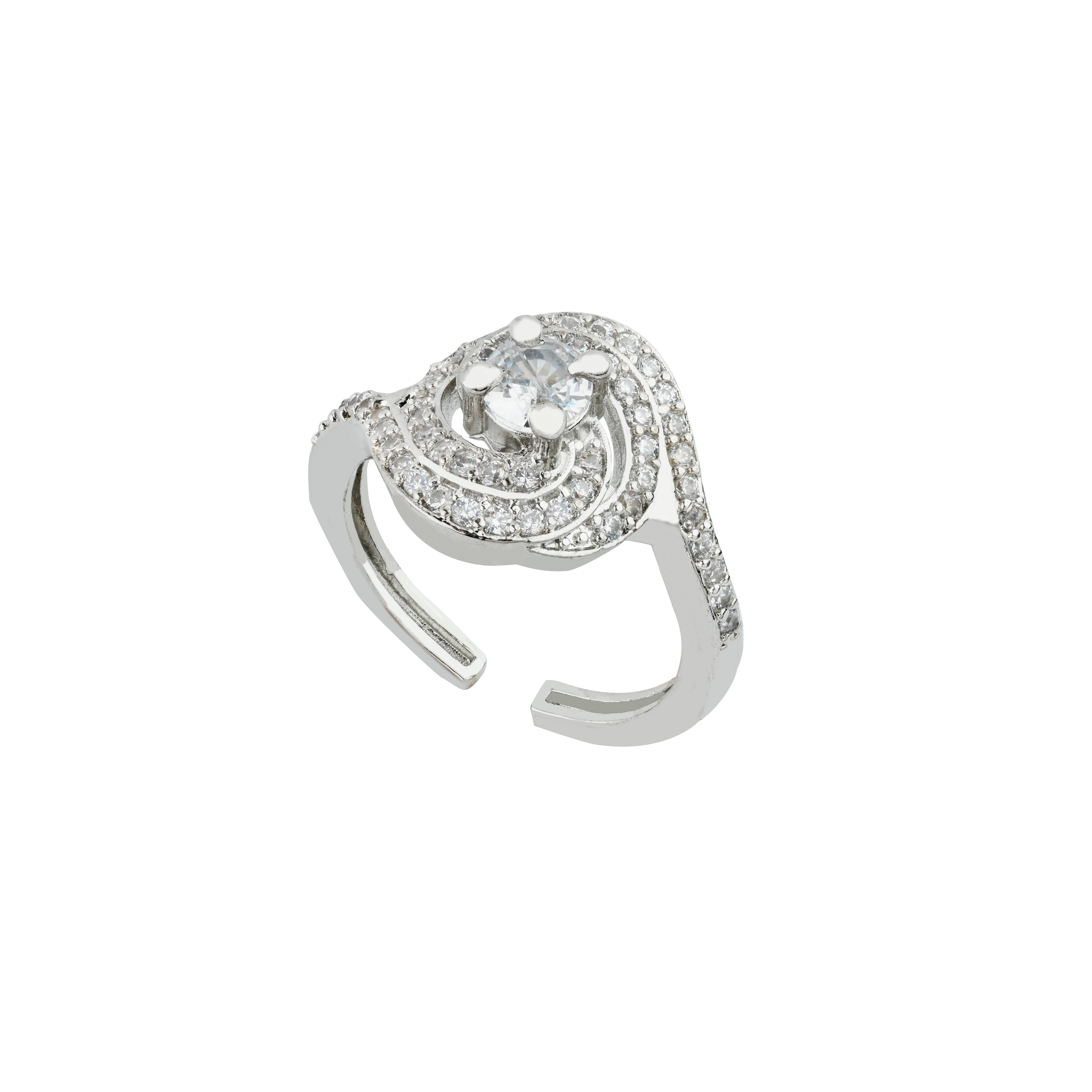 Product Description : Western Style Trendy Look Rhodium plated Cubic Zirconia Adjustable Ring for Women & girls.