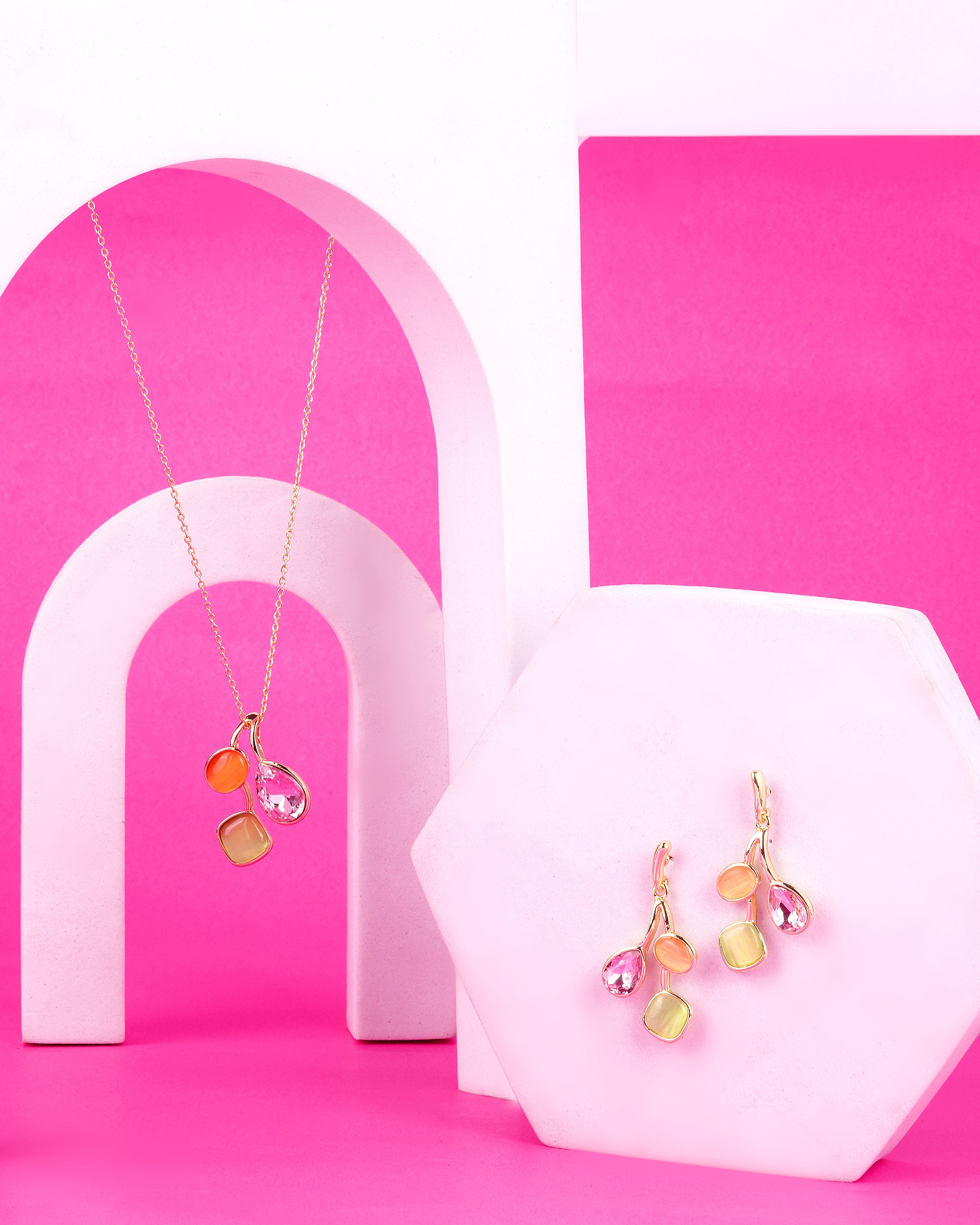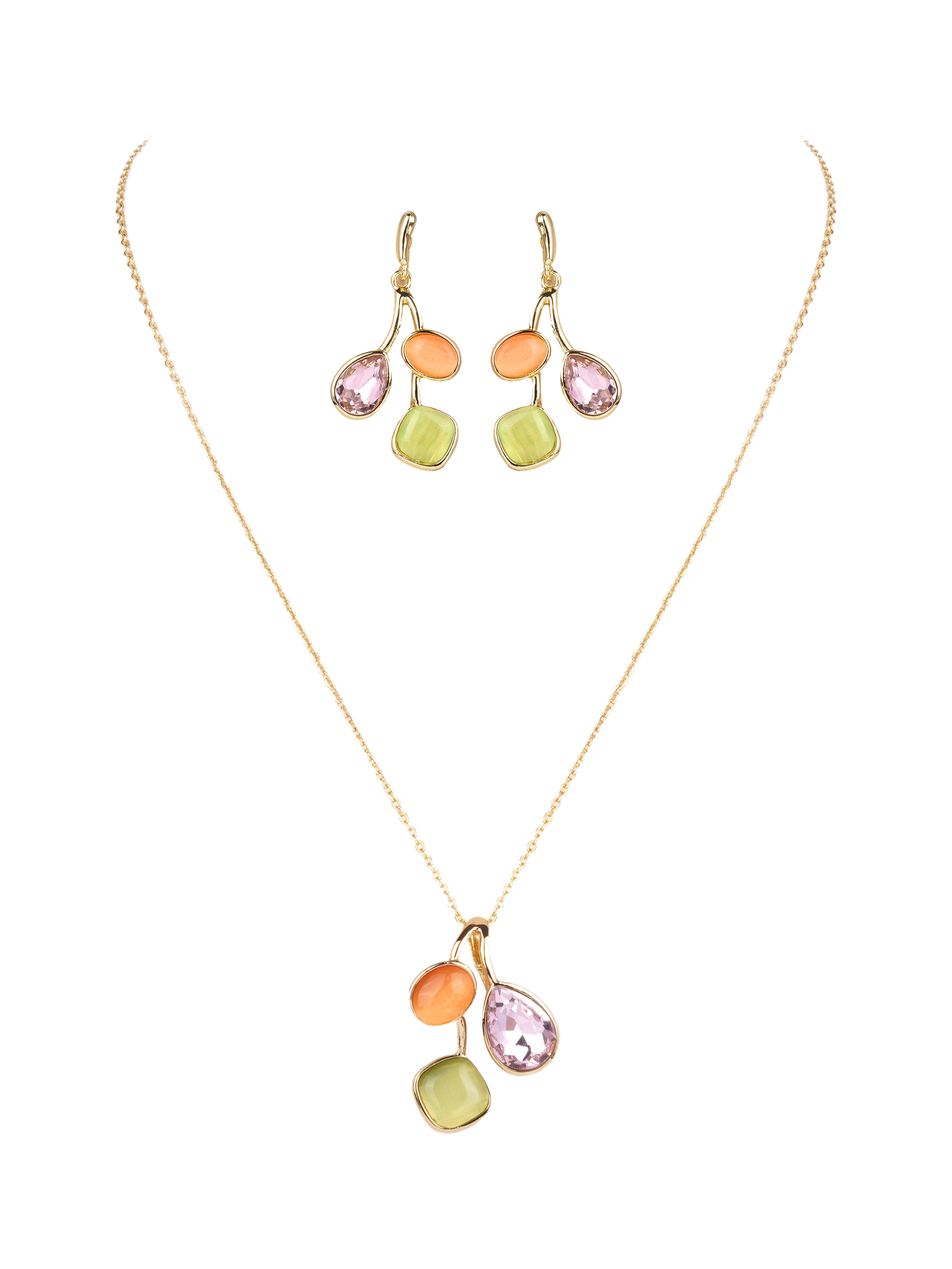 Product Description : western style elegant Style Pendant chain set with colorful crystal Earrings.